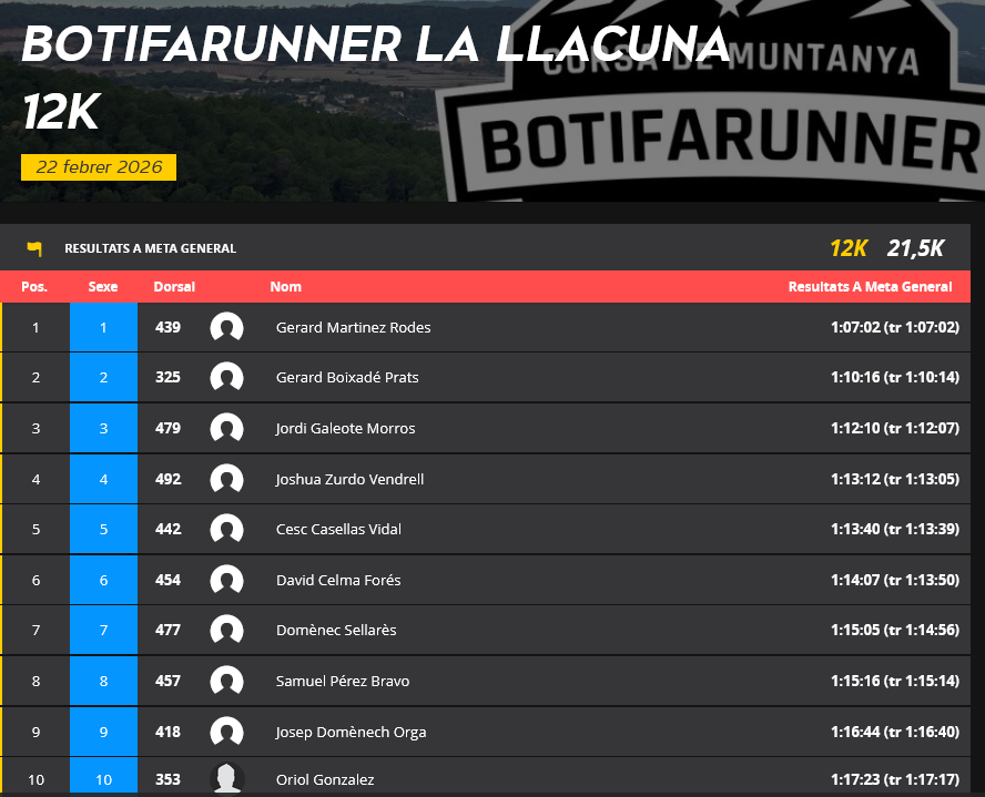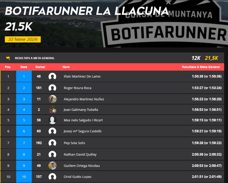 La Clàssica 21,5 K https://xipgroc.cat/ca/curses/Botifarunner2026/21-5k/resultats